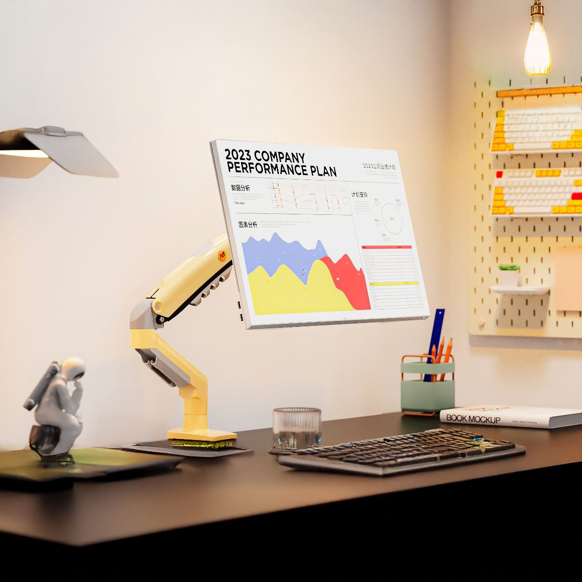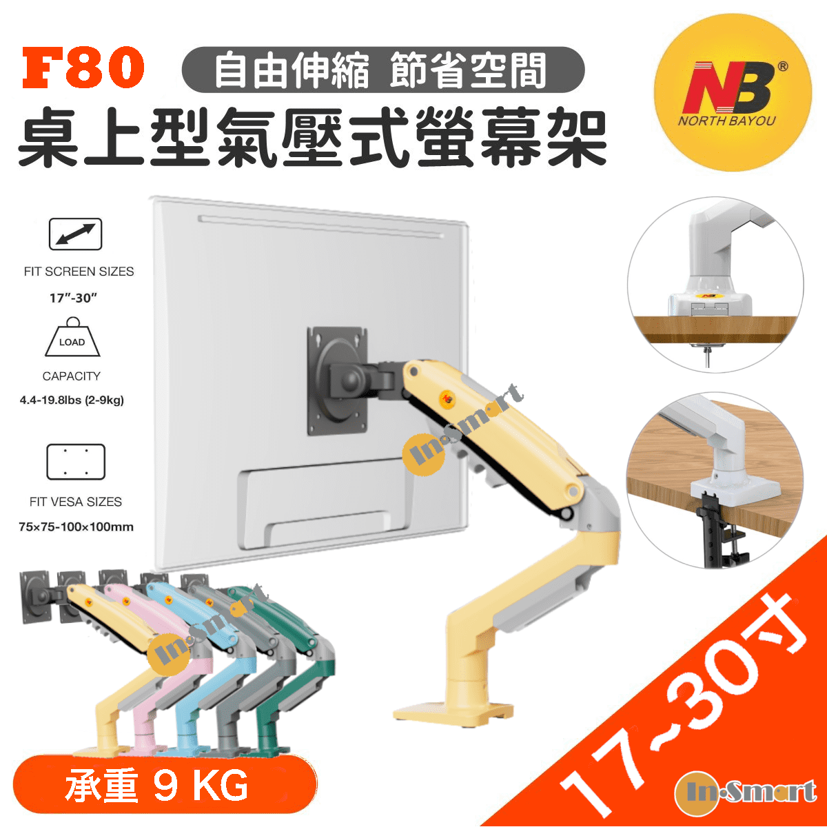 North Bayou – NB F80 桌上型氣壓式顯示器旋轉支架 (適合 17″-30″ 9kg) 免打孔 2025全新顏色-黃色 (平行進口,7日保養)
