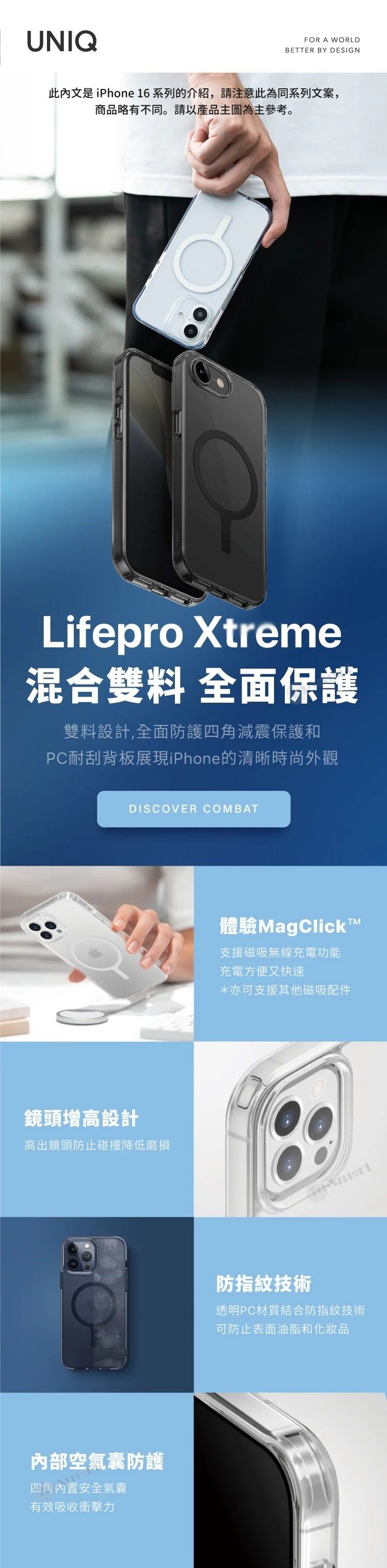 UNIQ – Lifepro Xtreme 磁吸防摔雙料保護殼 iPhone 16e (2025) 透明; 支援 MagSafe