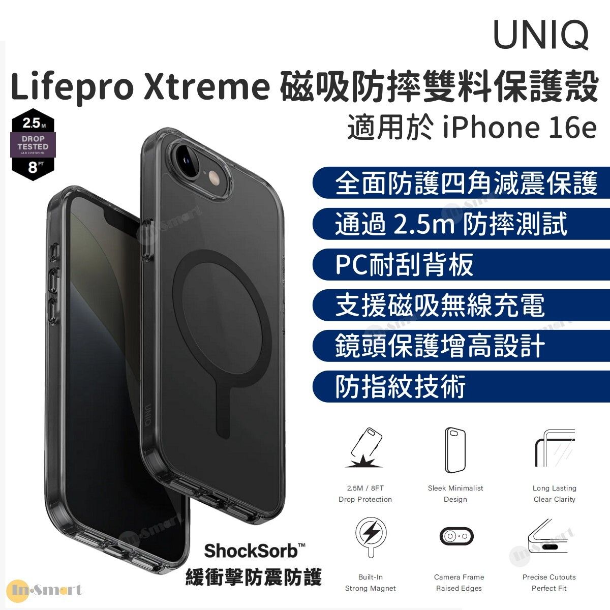UNIQ – Lifepro Xtreme 磁吸防摔雙料保護殼 iPhone 16e (2025) 透明黑; 支援 MagSafe