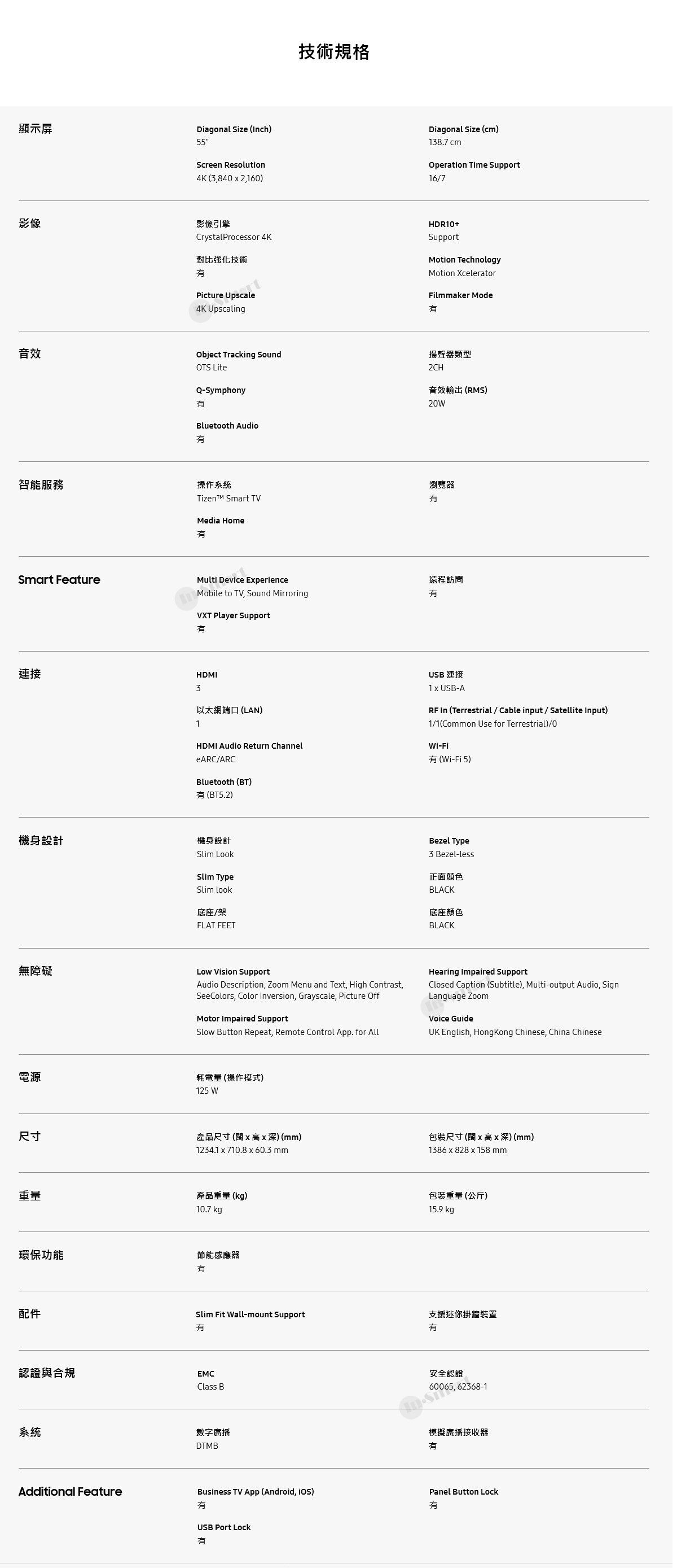 三星領先的視頻處理技術可提升每個內容的清晰度和一致性。智能高解像度提升技術由三星的Crystal UHD 處理器 4K提供支持,將低解像度提升至UHD,提供專業的影像畫質。4