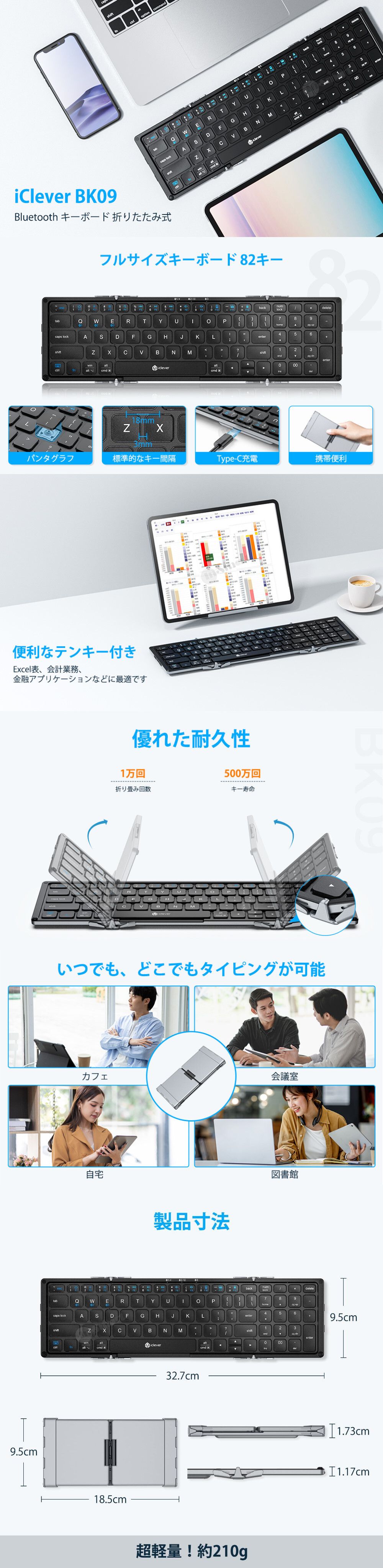 iClever – IC-BK09 超纖薄三折疊式藍牙鍵盤 (美式) 連數字鍵盤
