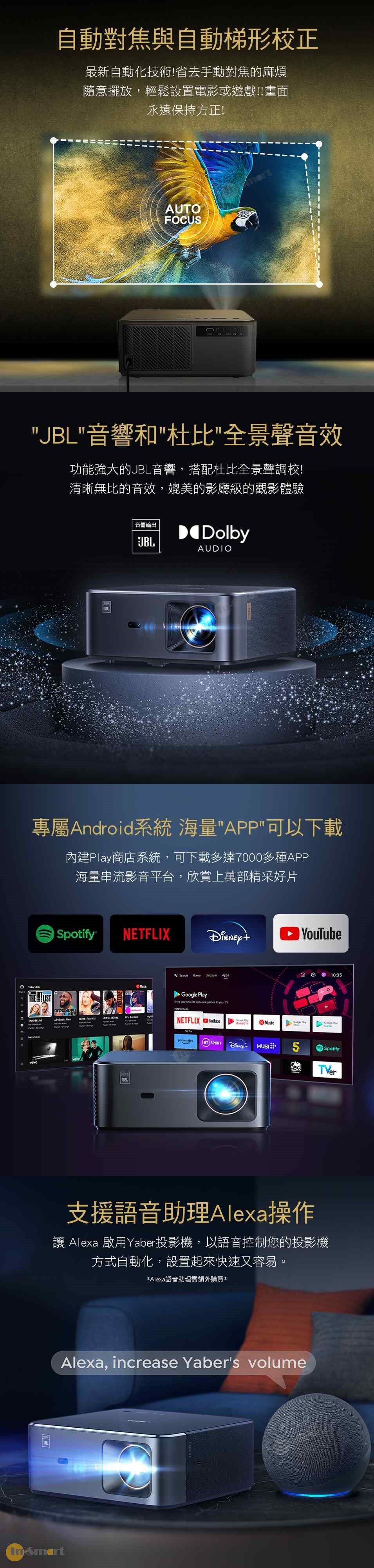 Yaber – K2S 影院級4K旗艦投影機 JBL 認証 10W 立體聲揚聲器 杜比音訊支援 800 ANSI 流明 Android TV