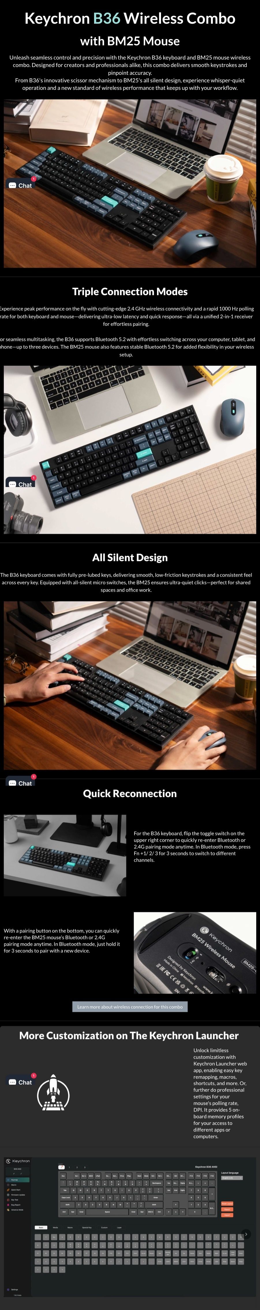 Keychron – B36 + BM25 無線鍵盤滑鼠組合 US Layout | 全尺寸靜音剪刀腳 | 三模藍牙 BT5.2 2.4G | 320小時續航 Mac Windows 辦公遊戲適用