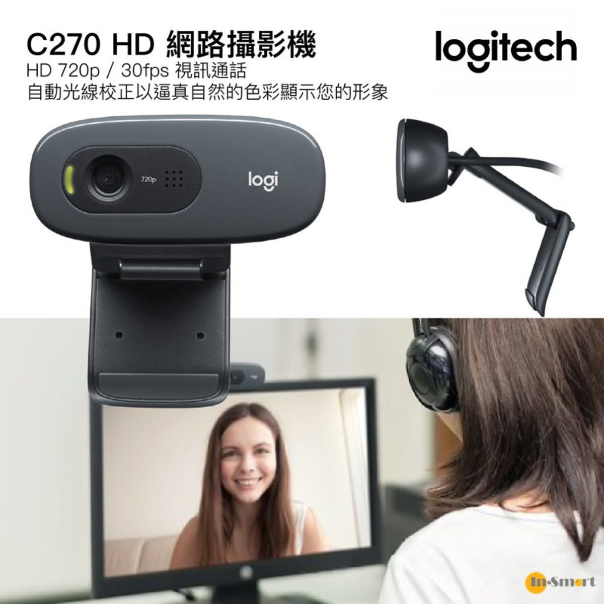 Logitech – C270 HD 網路攝影機 基本的 HD 720p 視訊通話