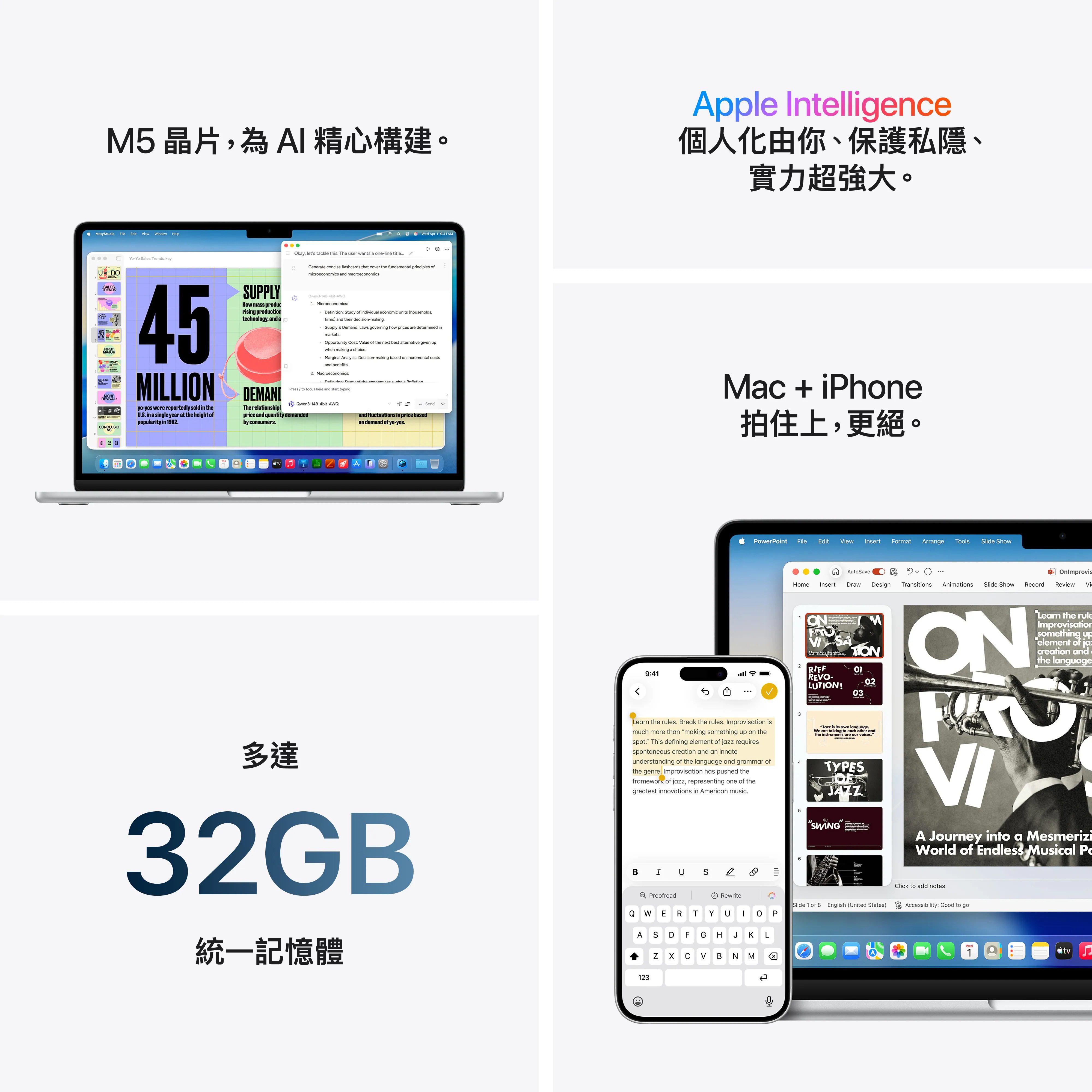 配備 M5 晶片;10 核心 CPU 及 GPU;24GB 統一記憶體;1TB 儲存空間