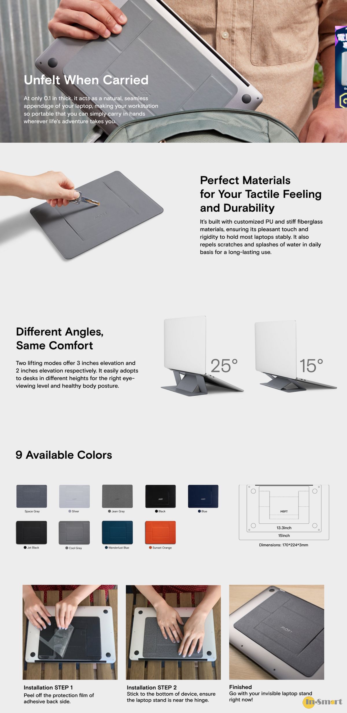 MOFT – 黏貼式隱形手提電腦支架|可調式完美視角|MS006|支援尺寸:11" - 16" 筆記型電腦 黑色