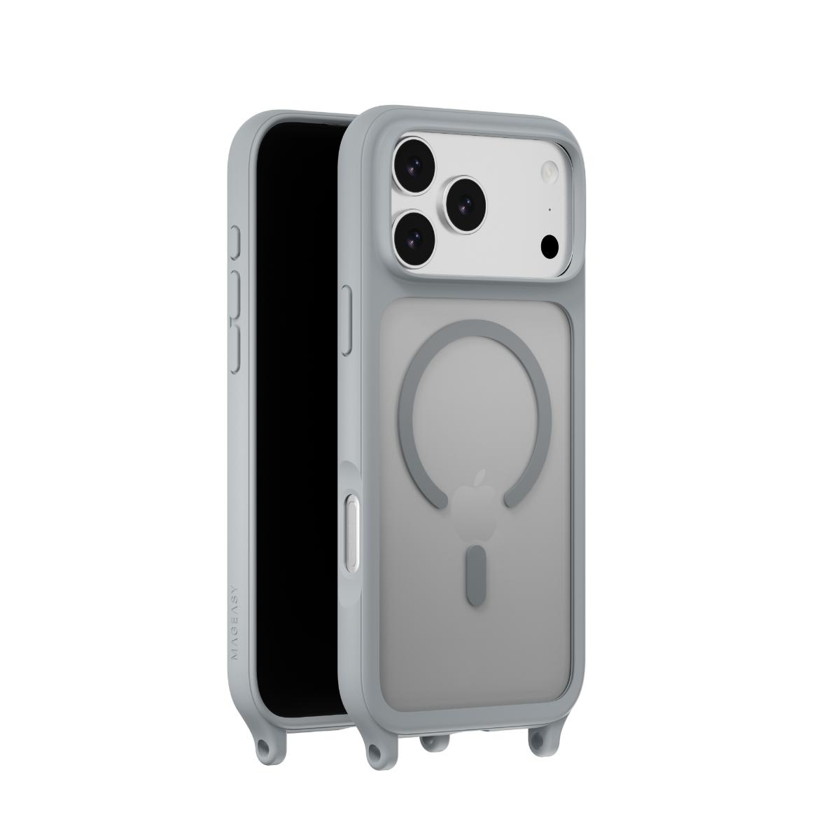 Roam M 採用一體式結構設計,配有鉤扣,可與手機掛繩搭配使用,提供更安全且無縫的體驗。為提供卓越保護,該產品具備四個吸震角落,並通過美國軍規跌落測試認證,可承受高達16英尺的跌落。邊緣紋理設計提供舒適且穩固的握持感,而精確定位的相機控制切口確保操作順暢,減少意外觸碰。此外,該手機殼相容MagSafe,內建磁鐵支援多種MagSafe配件和進階功能。