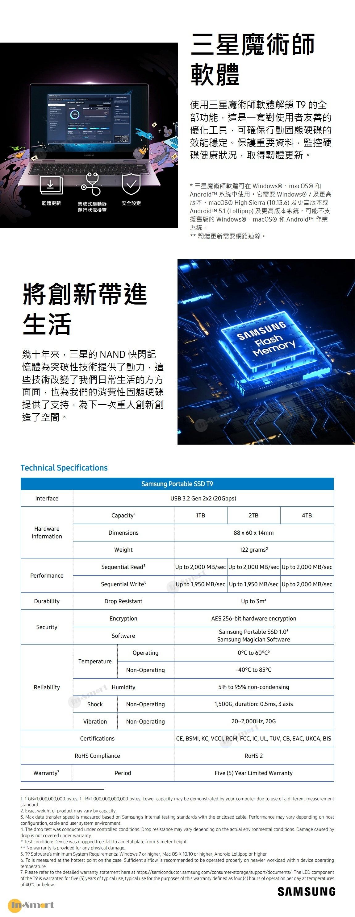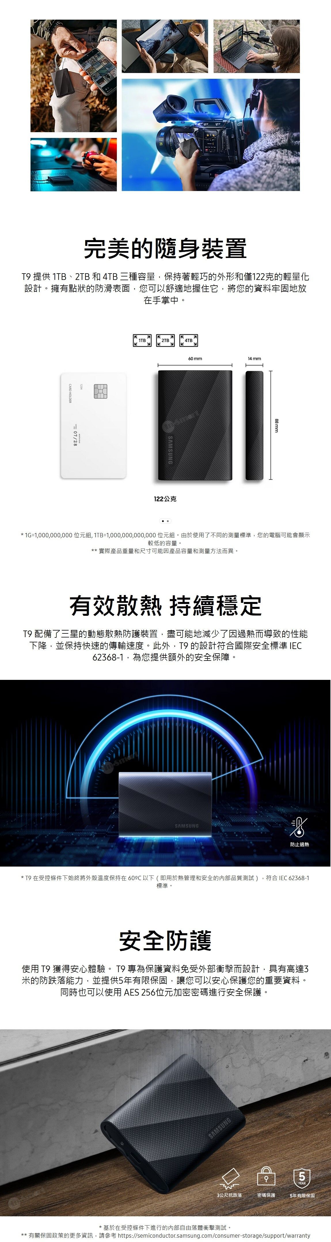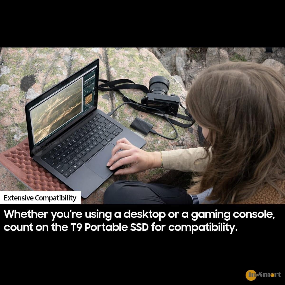 Samsung – T9 1TB USB-C 外置便攜流動固態硬碟 外接式 SSD 極速|USB 3.2 Gen 2|支援高達 2000MB/s 傳輸速度|iPhone 電腦兩用