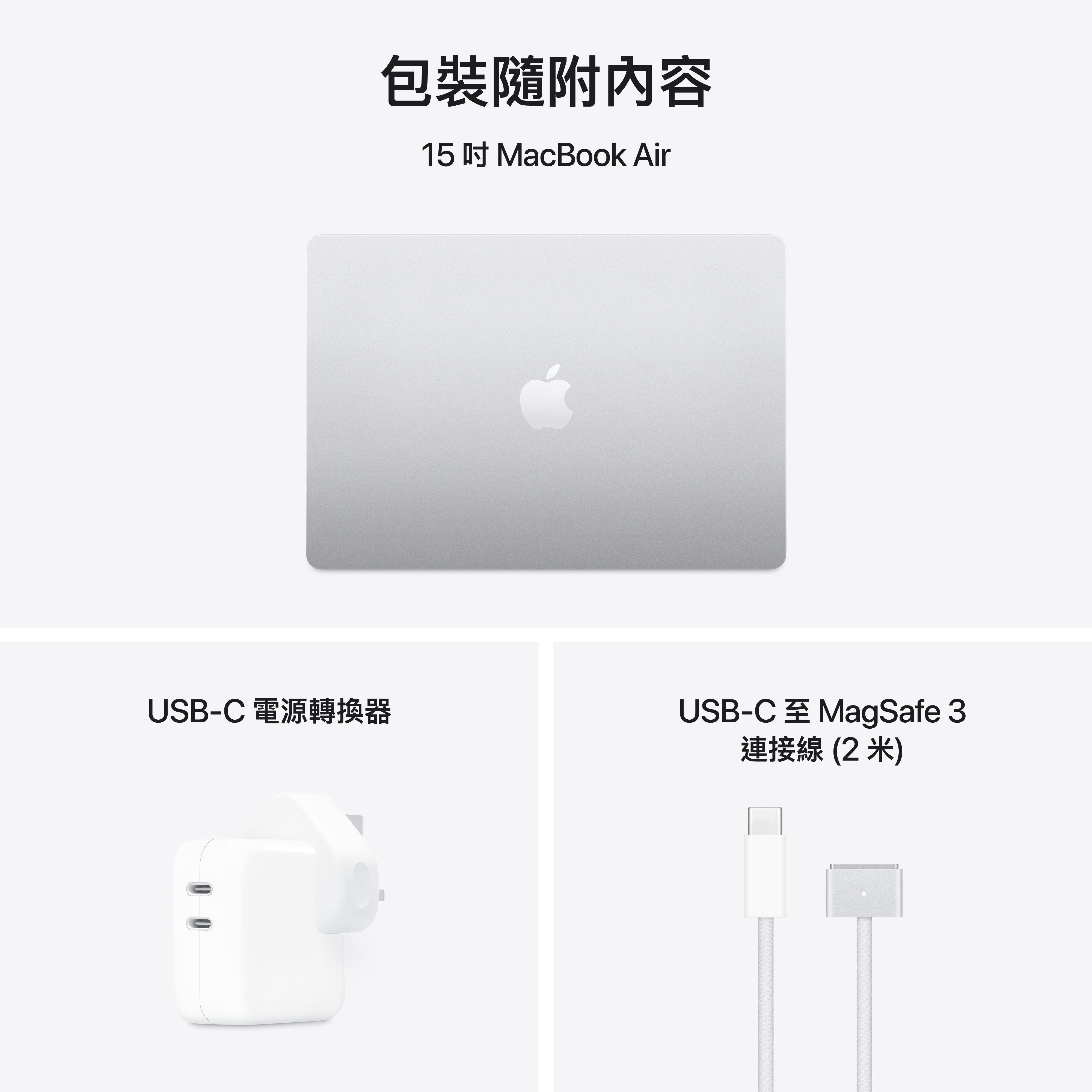 - 測試由 Apple 於 2025 年 1 月進行,使用配備 Apple M4、10 核心 CPU 及 8 核心 GPU 的預量產型 13 吋 MacBook Air 系統,以及配備 Apple M4、10 核心 CPU 及 10 核心 GPU 的預量產型 15 吋 MacBook Air 系統,全部均配置 16GB RAM 及 256GB SSD。測試使用 Apple 70W USB-C 電源轉換器 (型號 A2743) 及 USB-C 至 MagSafe 3 連接線 (型號 A2363) 進行。快速充電測試使用電力耗盡的 MacBook Air 裝置進行。計時由裝置於睡眠中被喚醒一刻,或啟動後出現 Apple 標誌一刻開始。充電時間視乎設定和環境因素而定;實際結果可能有所差異。