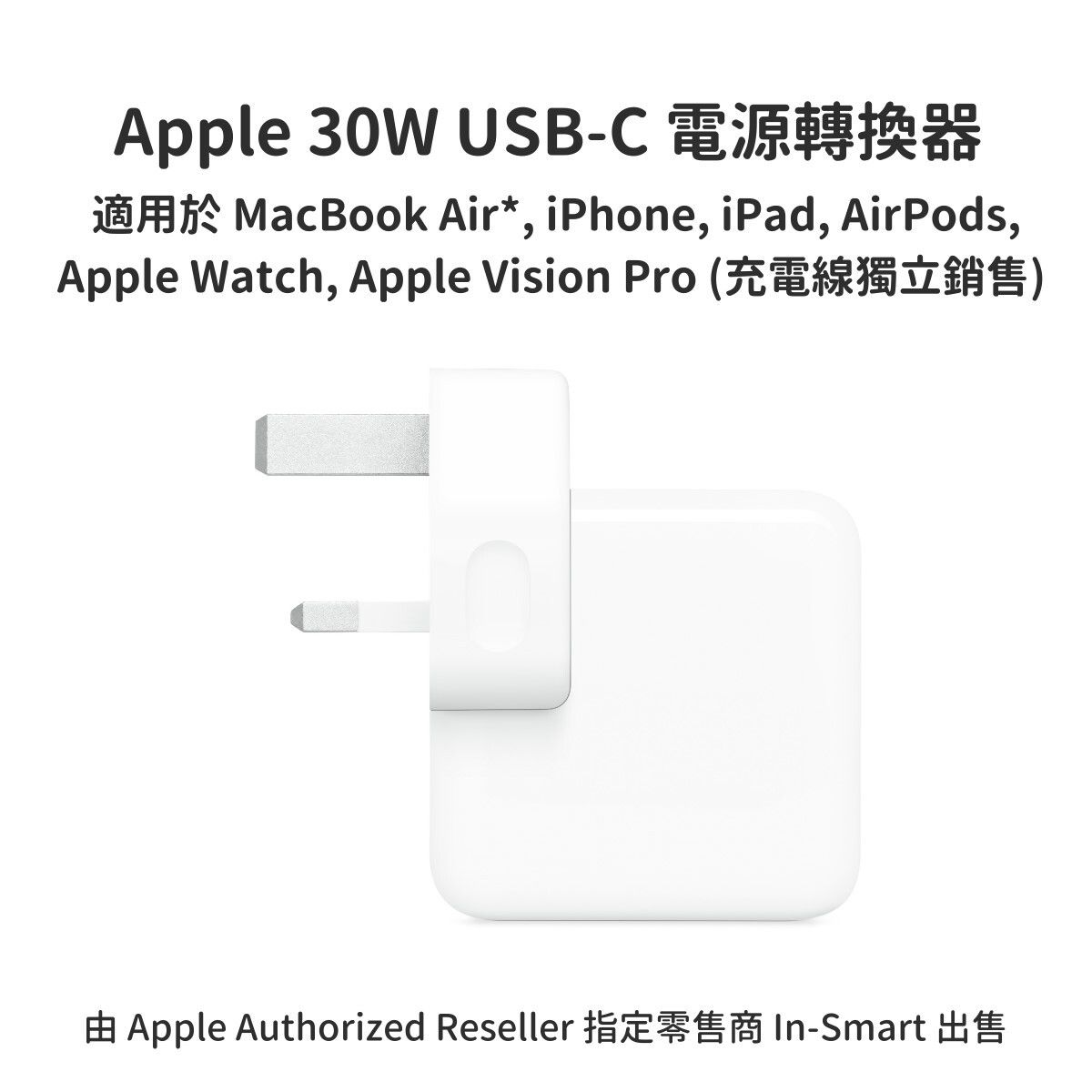 Apple – 30W USB-C 電源轉換器; 適用於 MacBook Air;* Apple Vision Pro; iPhone; iPad; Apple Watch; AirPods