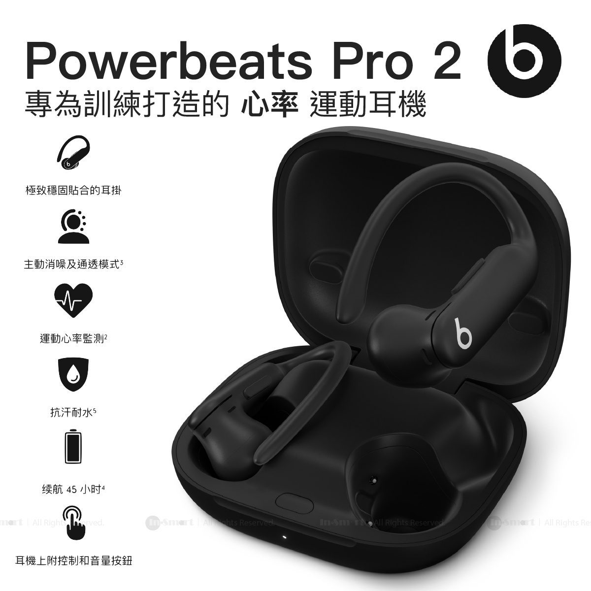 • Beats – Powerbeats Pro 2 主動消噪高效能無線藍牙耳機; 專為訓練打造; 運動心率監測; 抗汗耐水 極速黑