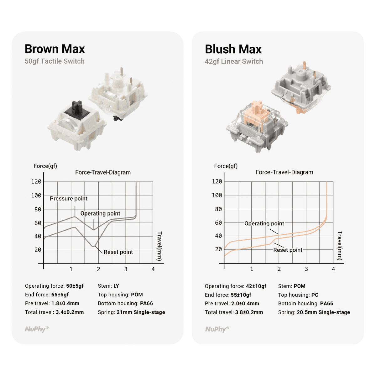 你不只是輸入文字,否則你會用薄膜鍵盤而不是機械鍵盤。Node 系列以纖薄時尚的身軀、墊片安裝結構、豐富的聲學調校,以及 Max 系列開關,帶來柔軟、平衡且愉悅的打字體驗。