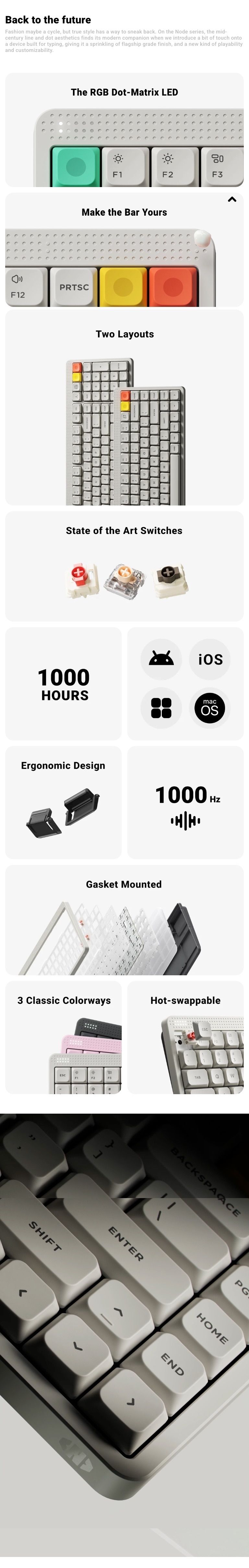 Node 的小兄弟是超級省空間的選擇,少十幾顆鍵卻保留 F 區,帶來大量桌面空間,重量也輕到方便隨身攜帶。