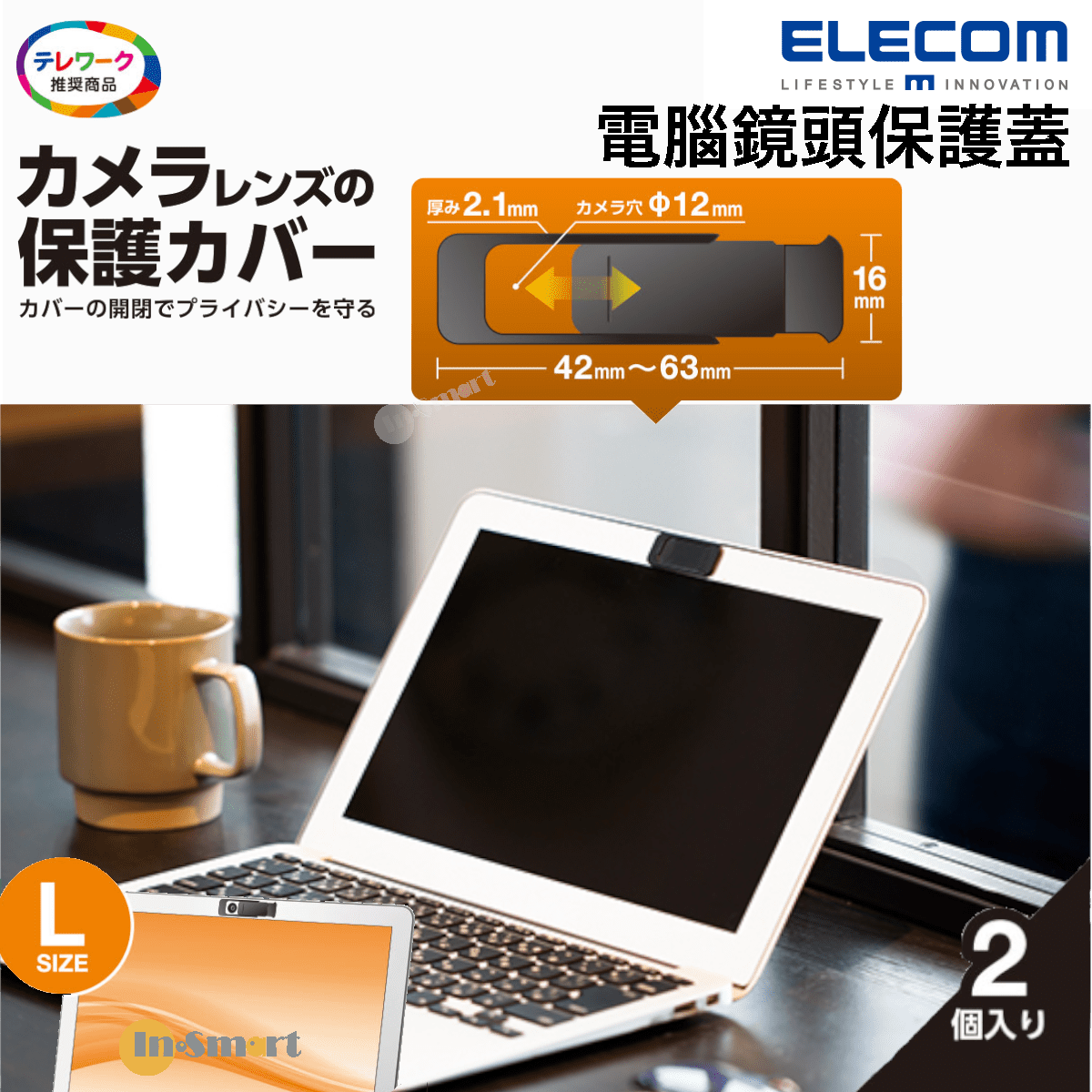 ELECOM – 電腦鏡頭的保護罩 大碼 2件裝 ESE-03LBK 電腦鏡頭的保護蓋|防偷窺神器|防黑客鏡頭貼|防偷窺器鏡頭|私隱保護蓋|安裝簡單|保護隱私|防監視|撥動開關 (16 x 42~63 mm)