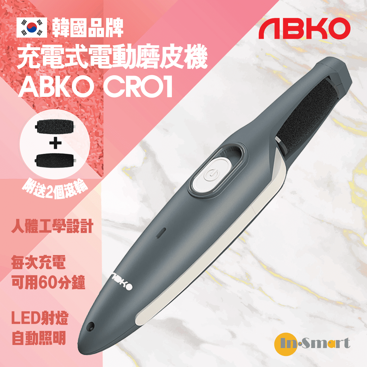 ABKO CR01 韓國充電式電動磨皮機 – 灰色