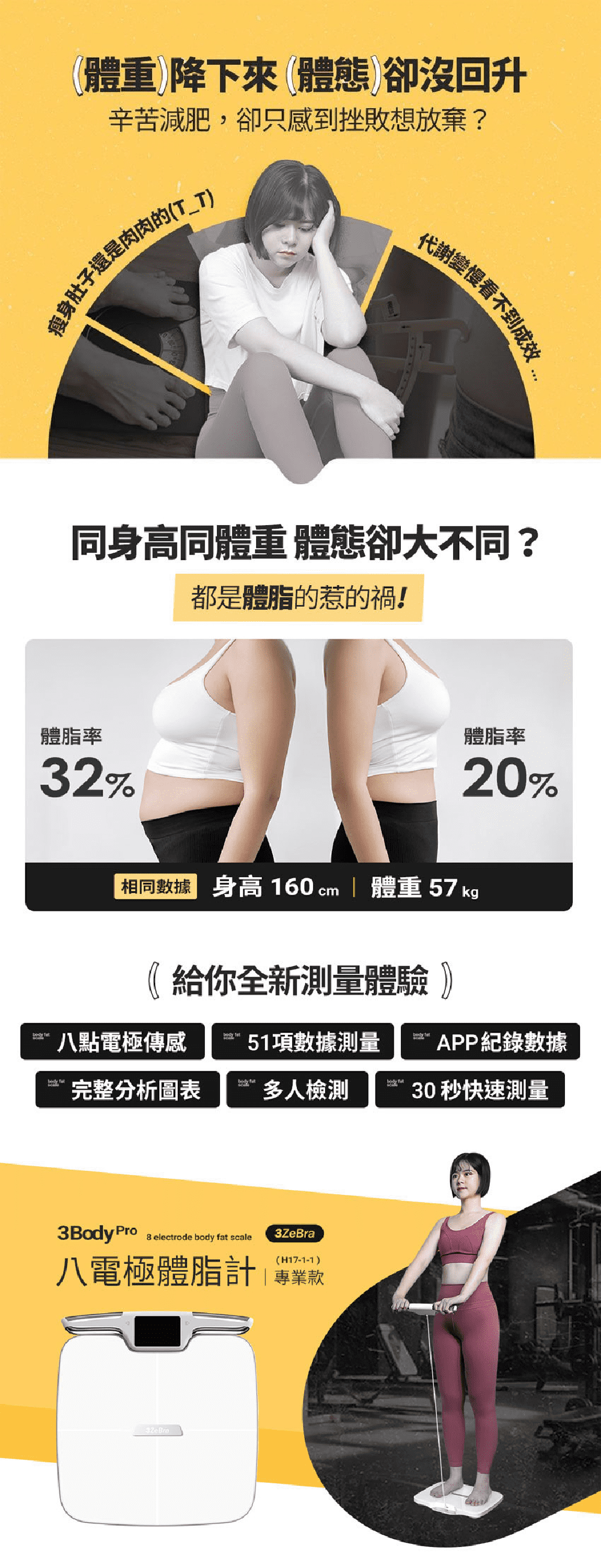 3ZeBra - 3Body Pro 八電極高精度體脂計 (專業款) / 藍牙連接體脂計 附專用APP / 51 項綜合指標檢測 健身體重磅 智能體脂磅 AI脂肪磅 肌肉量磅 瘦身磅 新陳代謝磅 智能健康監測儀 體脂儀  (三隻斑馬)