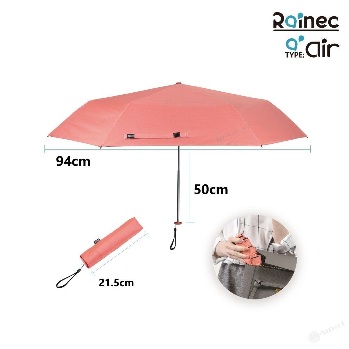 RAINEC – Air 超輕不透光防UV潑水摺傘縮骨遮 (晴雨兼用) – 珊瑚紅