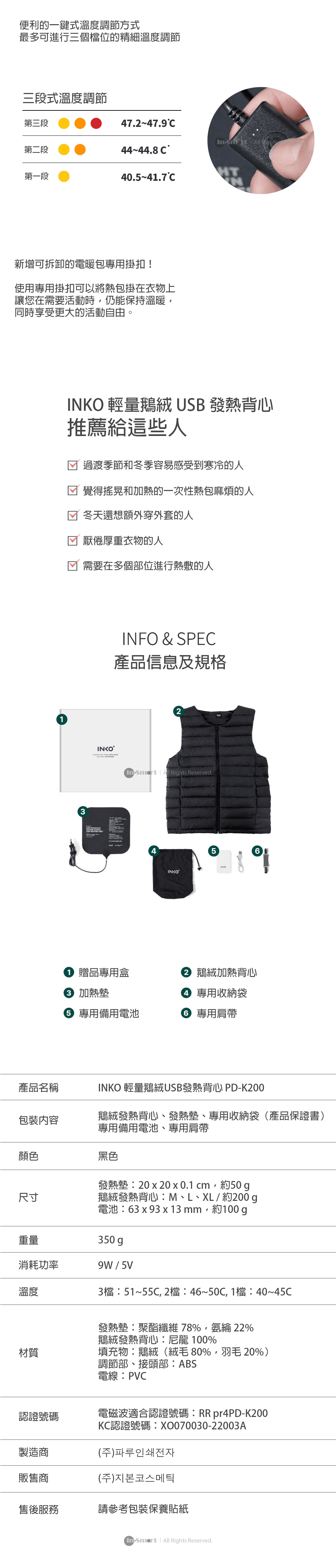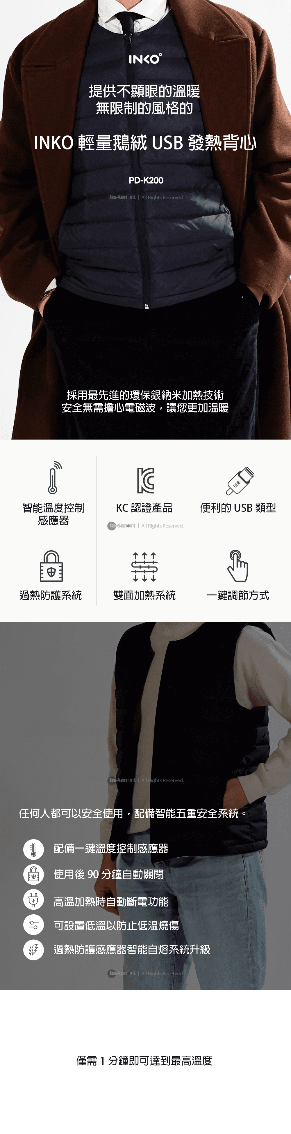 INKO 輕量高級鵝絨納米銀墨水技術發熱背心 (M/L/XL) 韓國製造