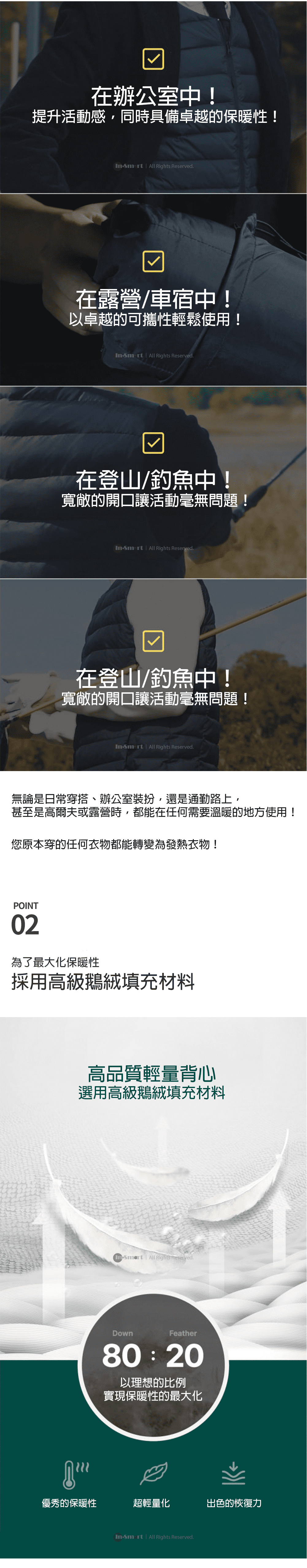 背心填充物料: 高級鵝絨(絨毛80%,羽毛20%)
