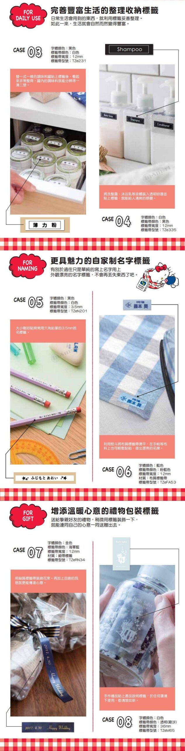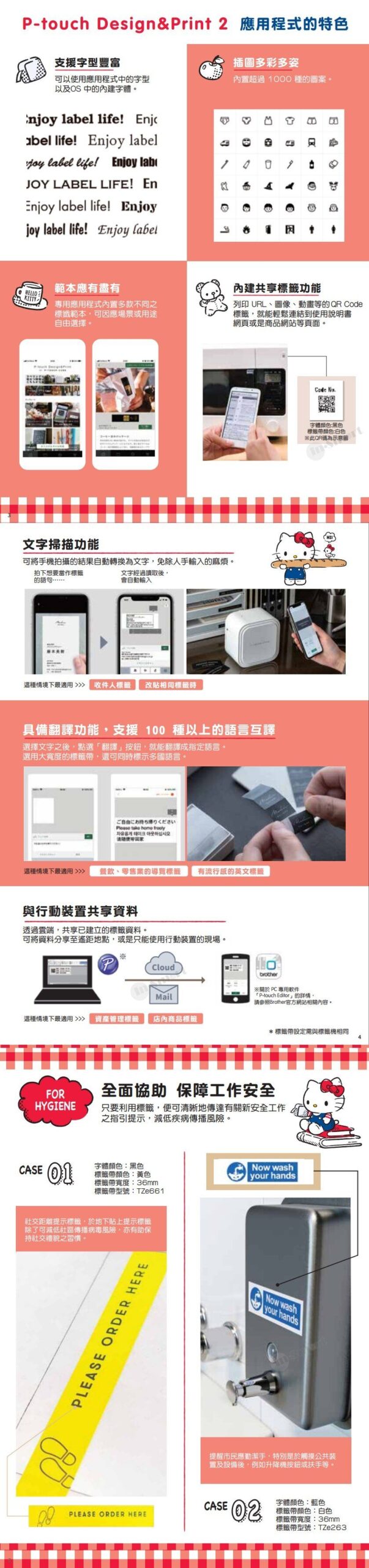 現在只要有Brother全新 PTP300BTKN 日系標籤機,輕鬆一「Touch」,就能用智能手機以藍芽連接標籤機進行標籤編輯設計和打印,步驟簡易。配合下載Brother P-touch Design&Print 2的應用程式,你的iOS或Android智能手機就隨時隨地成為創意設計平台,在家中或辨公室亦無需勞師動眾開啟和接駁電腦,只需透過手機應用程式,在彈指之間設計和組合標籤,並以藍牙傳送至標籤機打印。此外,程式內置多種式樣、圖案和邊框,是你發揮創意巧思的素材。全新的P-Touch標籤機可以廣泛應用於不同範疇,無論是收拾家中廳、房、廚、廁繁多的日用品,還是整理辦公桌上日積月累的文件,或是想發揮點綴生活的創意巧思,P-Touch標籤機都能夠大派用場,而且過程有趣輕鬆。