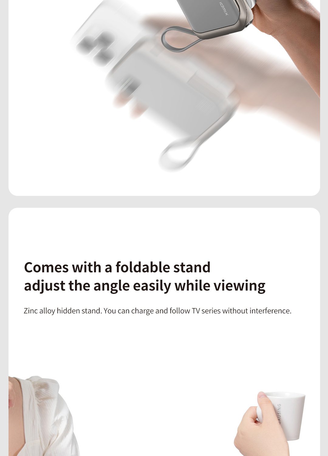 鋅合金隱藏支架,可在充電的同時追劇,互不干擾。