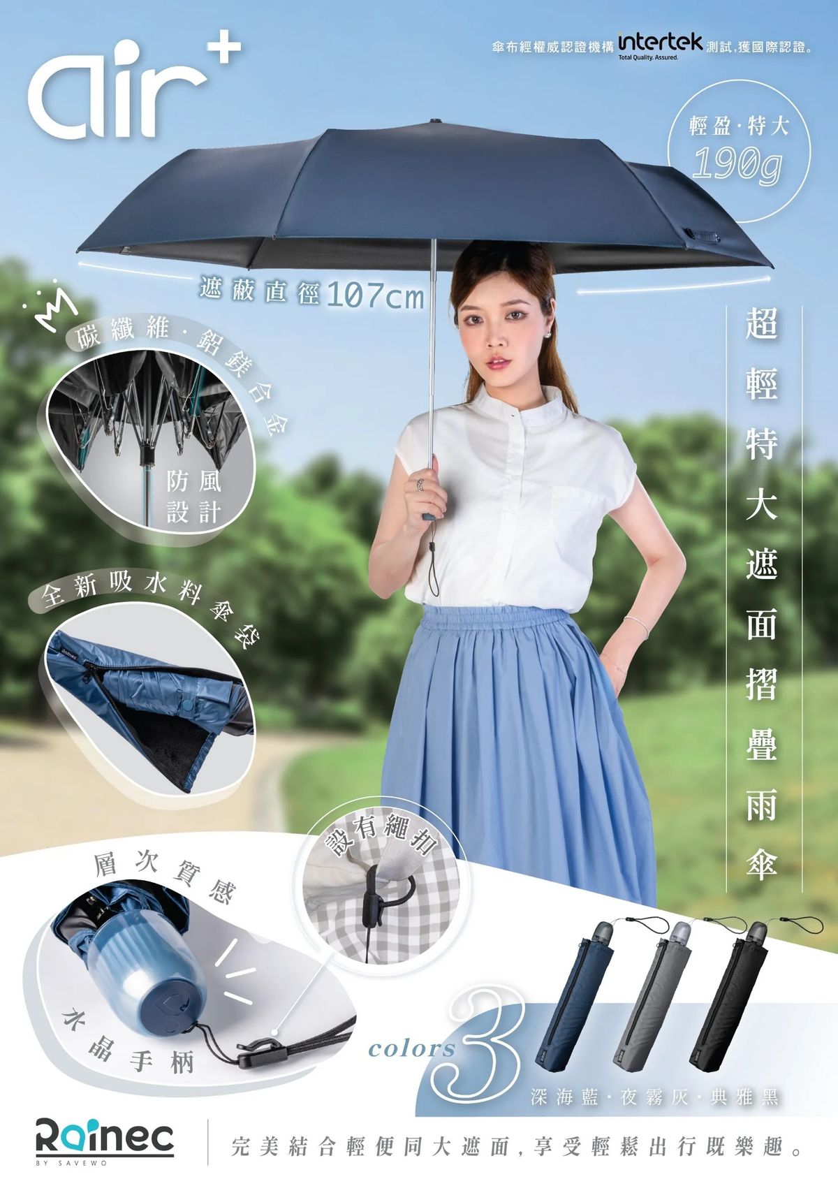 RAINEC – RAINEC AIR PLUS BY SAVEWO 超輕特大遮面摺疊雨傘 (晴雨兼用) 典雅黑