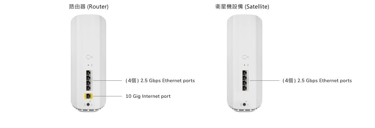 - 埠 一(1)臺10千兆網際網路WAN埠, 四 (4)個10/100 / 1000/2500 Mbps千兆位以太網LAN埠
