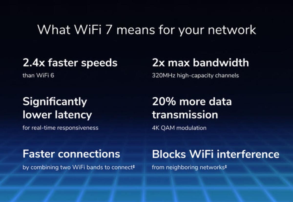 † 最大無線信號速率源自IEEE 802.11規範。實際數據吞吐量和無線覆蓋範圍將因網路,您所在國家/地區的法規和環境條件(包括網路流量,設備限制和建築施工)而有所不同。NETGEAR對本產品與未來標準的兼容性不做任何陳述或保證。連接到其他802.11be 9.3Gbps設備時,可實現高達6.5Gbps的無線速度。