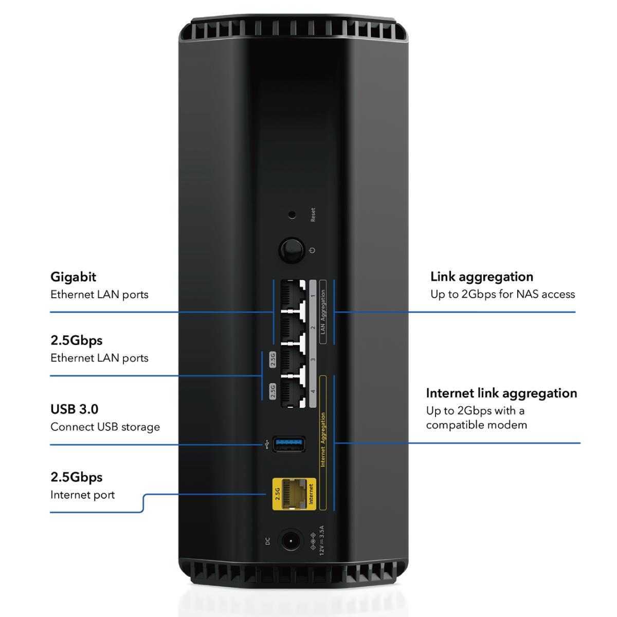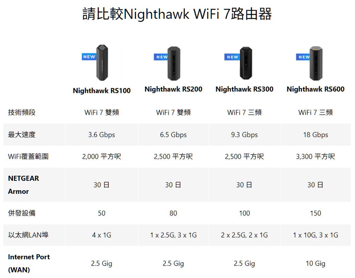 † 最大無線信號速率源自IEEE® 802.11規範。實際數據吞吐量和無線覆蓋範圍將因網路,您所在國家/地區的法規和環境條件(包括網路流量,設備限制和建築施工)而有所不同。NETGEAR對本產品與未來標準的兼容性不做任何陳述或保證。連接到其他802.11be 18.7Gbps設備時,可實現高達18.7Gbps的無線速度。
