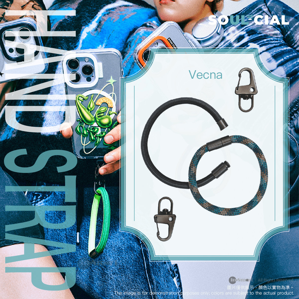 PhoneSuit – SOULCIAL 多功能手帶手機帶 (25cm 手帶 x2) – Vecna (黑色 / 青色)