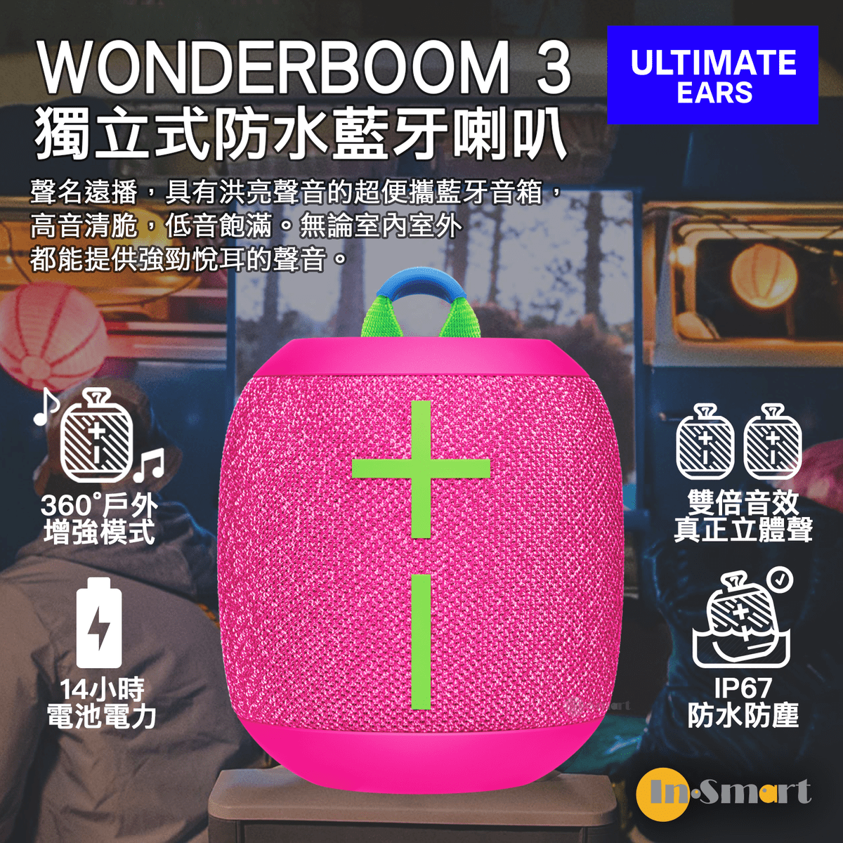 令人驚嘆的 IP67 防護等級讓 WONDERBOOM 3 具有防塵、防污甚至可承受一兩次濺灑的耐用性。它甚至可以浸入水中 30 分鐘,這讓其成為游泳池、海灘、小徑或淋浴的完美伴侶。