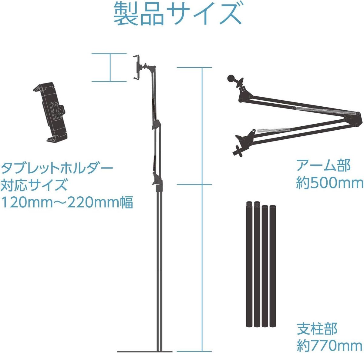 外形尺寸:臂總長:約500mm。立柱總長:約770mm。底座:約195 × 325 x 26 mm