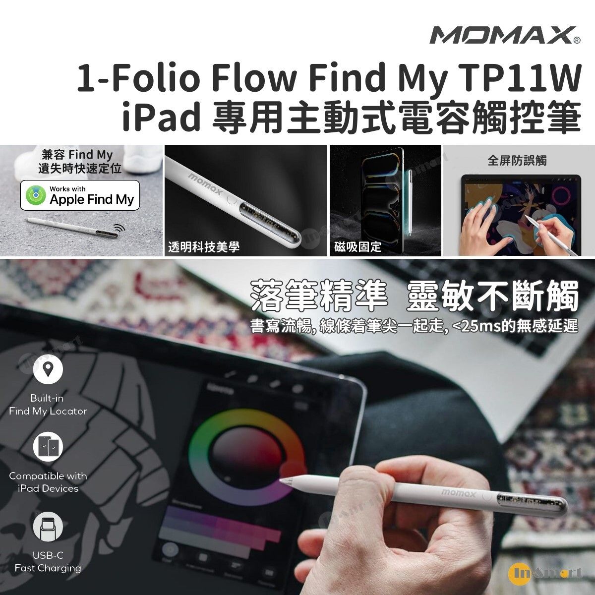 體驗 Momax 1-Folio 觸控筆的精確度與自然書寫,具備高傾斜敏感度,實現真實筆觸及手掌排斥技術,讓您工作不受干擾。與 Apple 的 Find My 兼容,便於快速找回且保持隱私,觸控筆還可以磁性吸附於 iPad 以便於取用與存放。具備多功能觸控電源開關和感應的工作模式,確保無縫的使用體驗與效率。