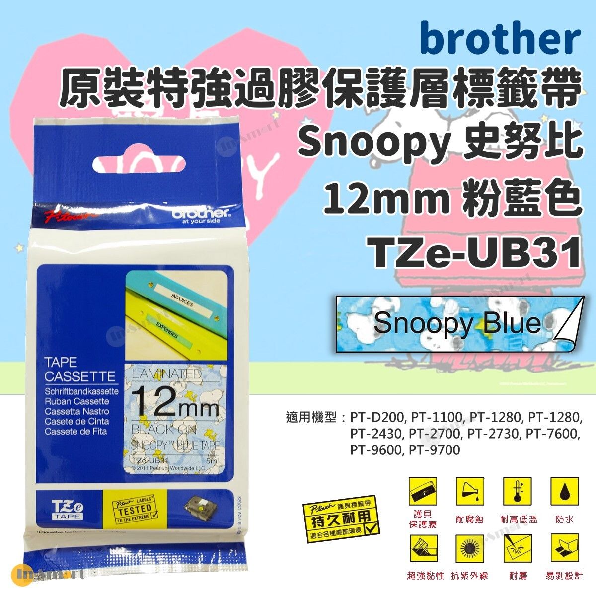 BROTHER – 原裝特強過膠保護層卡通標籤帶 Snoopy 藍底黑字 12mm TZe-UB31