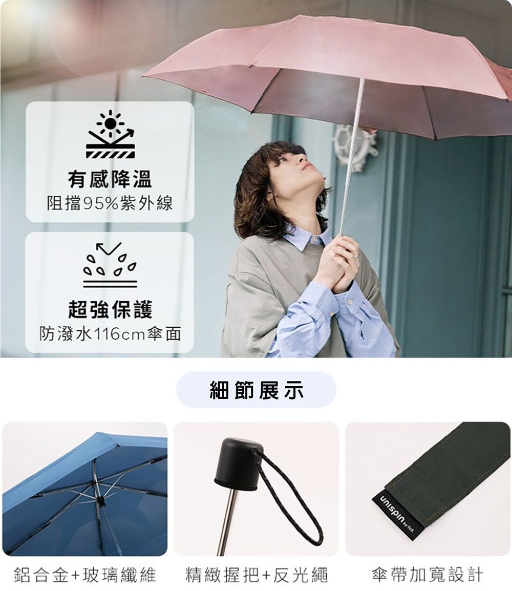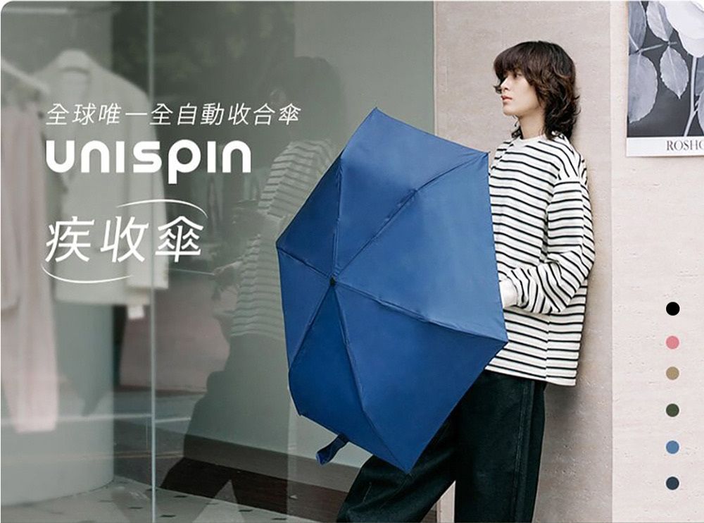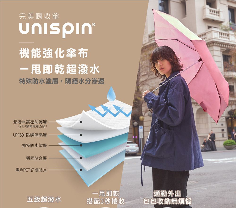Unispin FAST FOLD 自動疾收傘 | 3秒極速收合 整齊貼服 | 縮骨遮 輕便折疊傘 | 防曬 UPF50+ UV晴雨傘 | 鋁合金+玻璃纖維 | 五級防潑水