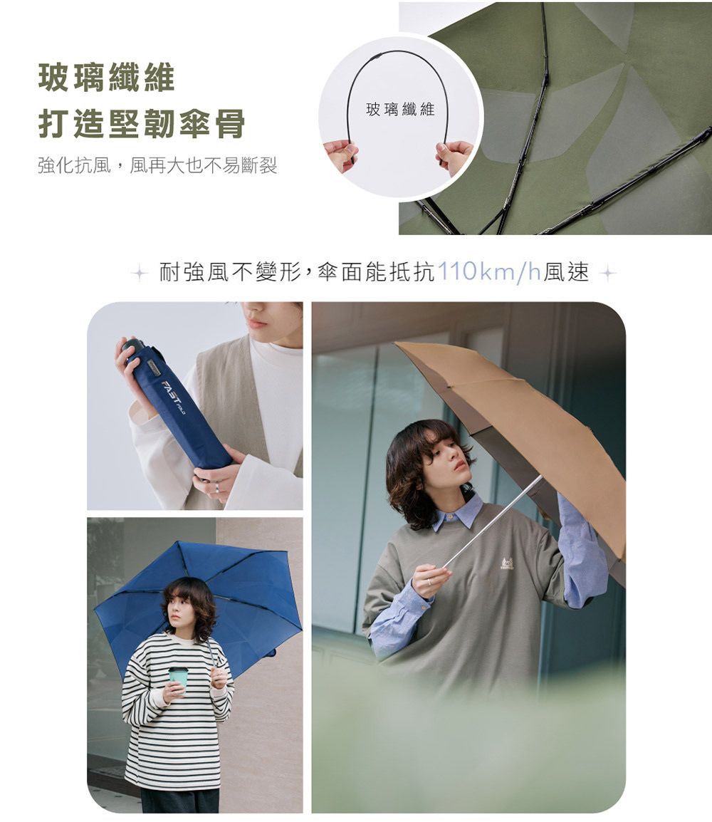 ・玻璃纖維製傘骨:高韌度具彈性,遇強風不易斷。