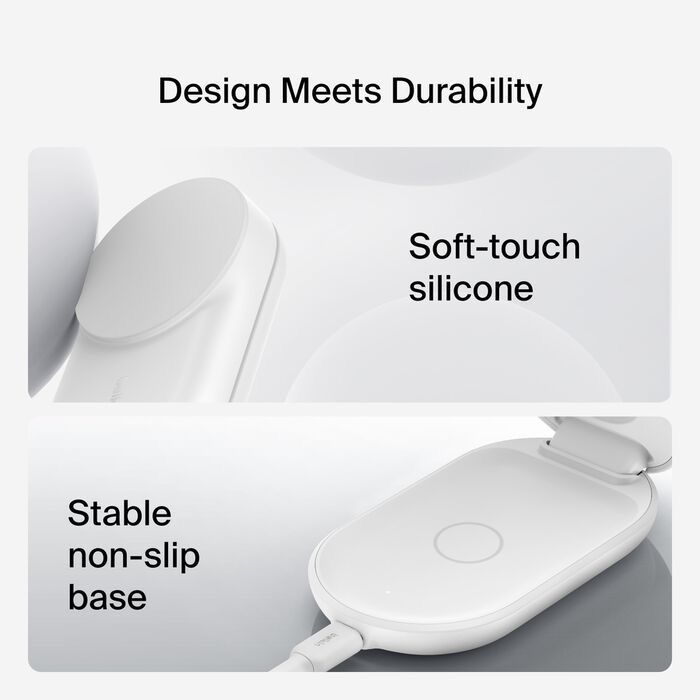 Belkin – UltraCharge 3合1可摺疊磁性充電器 Qi2 25W 圓形 白色 | WIZ037MYWH