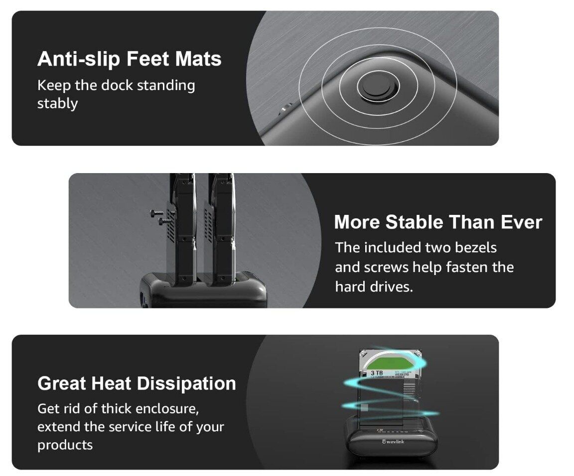 高速雙槽方案:為創意工作、資料備份等任務,提供同時讀寫兩隻 2.5吋 / 3.5吋 SATA HDD/SSD 的緊湊解決方案。