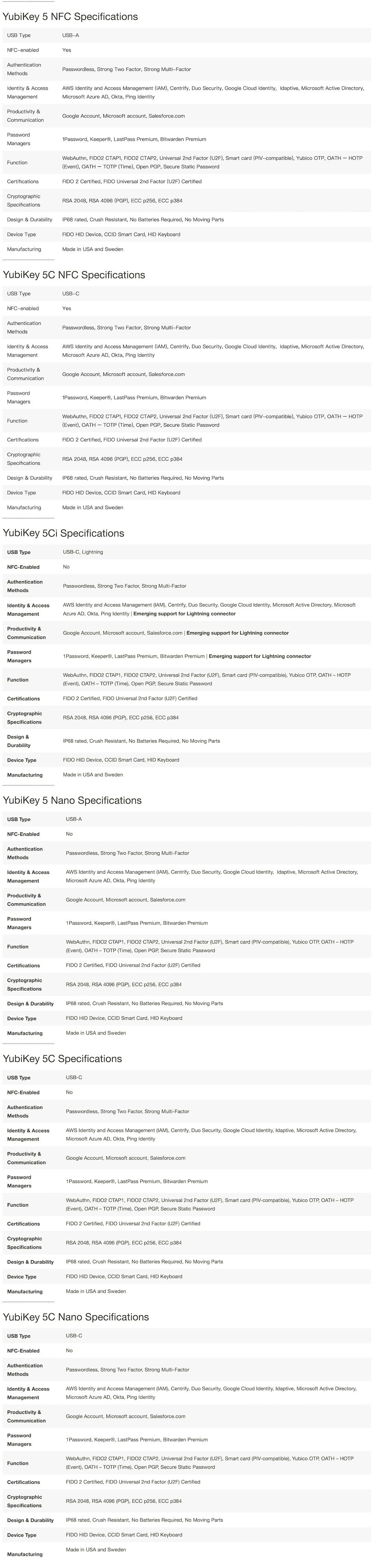 WORKS – YubiKey 5 系列適用於大多數網絡服務